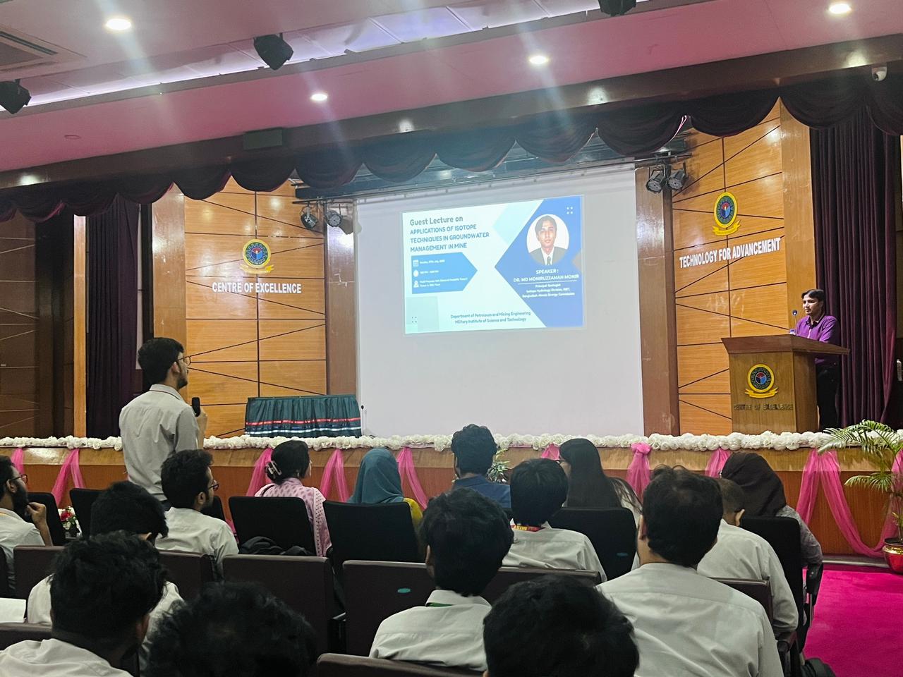 The Department of Petroleum and Mining Engineering (PME), MIST organized a guest lecture on “Application of Isotope Techniques in Groundwater Management in Mines” on 27 July 2025. The session was conducted by Dr. Md. Moniruzzaman Monir, Principal Geologist, Bangladesh Atomic Energy Commission.
