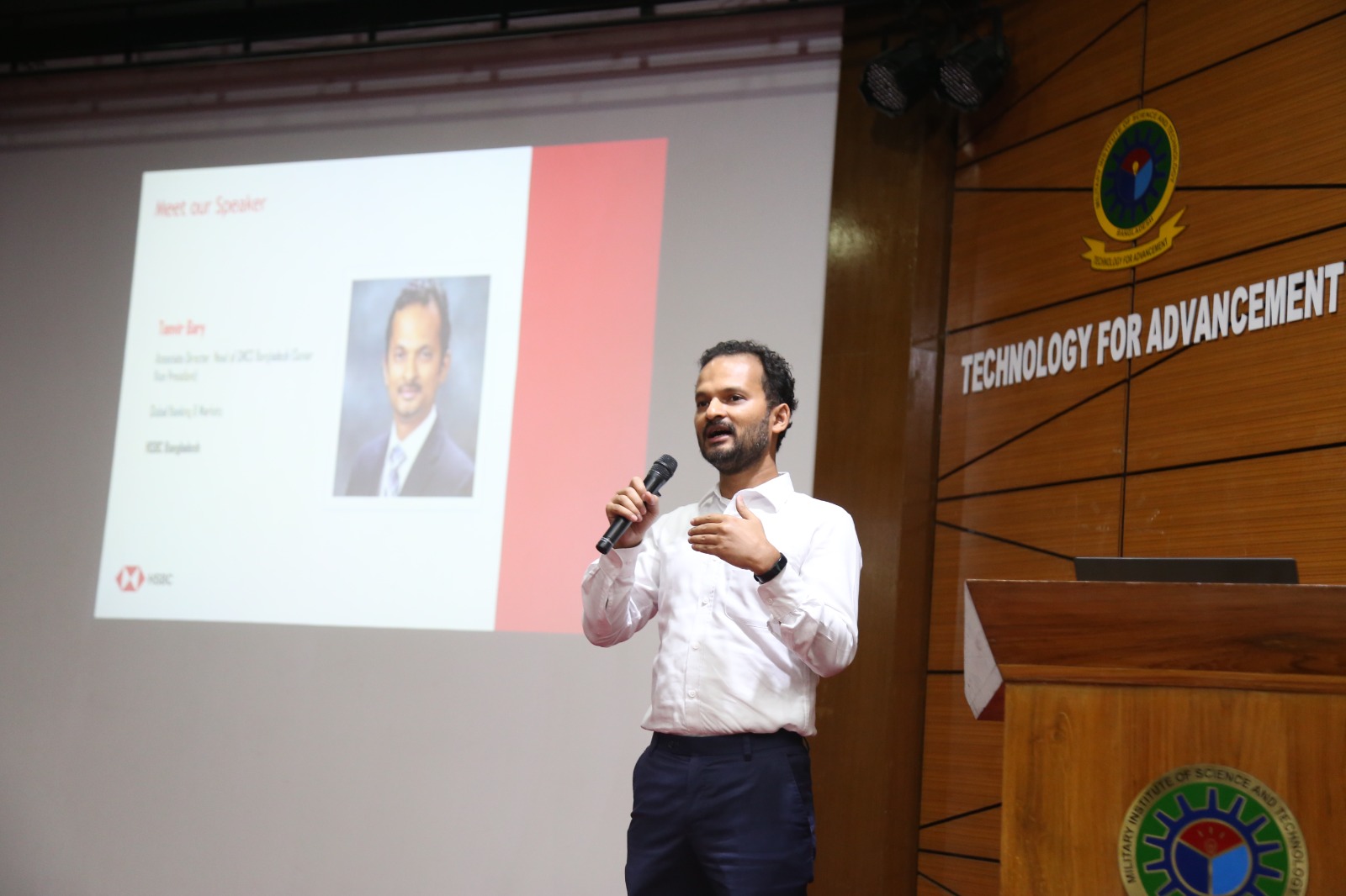 MIST Career Club organized an outstanding seminar in collaboration with HSBC Bank under the supervision of DSW on 8th May, 2023. Our distinguished chief guest for the seminar was Colonel Zabed Sultan, BGBMS the Director of the Directorate of Students’ Welfare.The seminar featured notable guests like Tanvir Bari, the Associate Director and Head of GMCS Bangladesh Global Banking and Markets, Imran Uddin Ahmed, the Manager of Talent Acquisition and Vice President of Human Resources, and Shayka Shahid Joyee, an officer in Talent Acquisition and Human Resources. These speakers provided a comprehensive overview of the career opportunities available to engineers at HSBC Bank. Additionally, the seminar featured an engaging quiz segment, where the top five scorers reached to the "Final Value Assessment Round" towards the opportunity of internship in HSBC Bank. After the event, a group photo session was held to capture the memorable moments of the seminar.