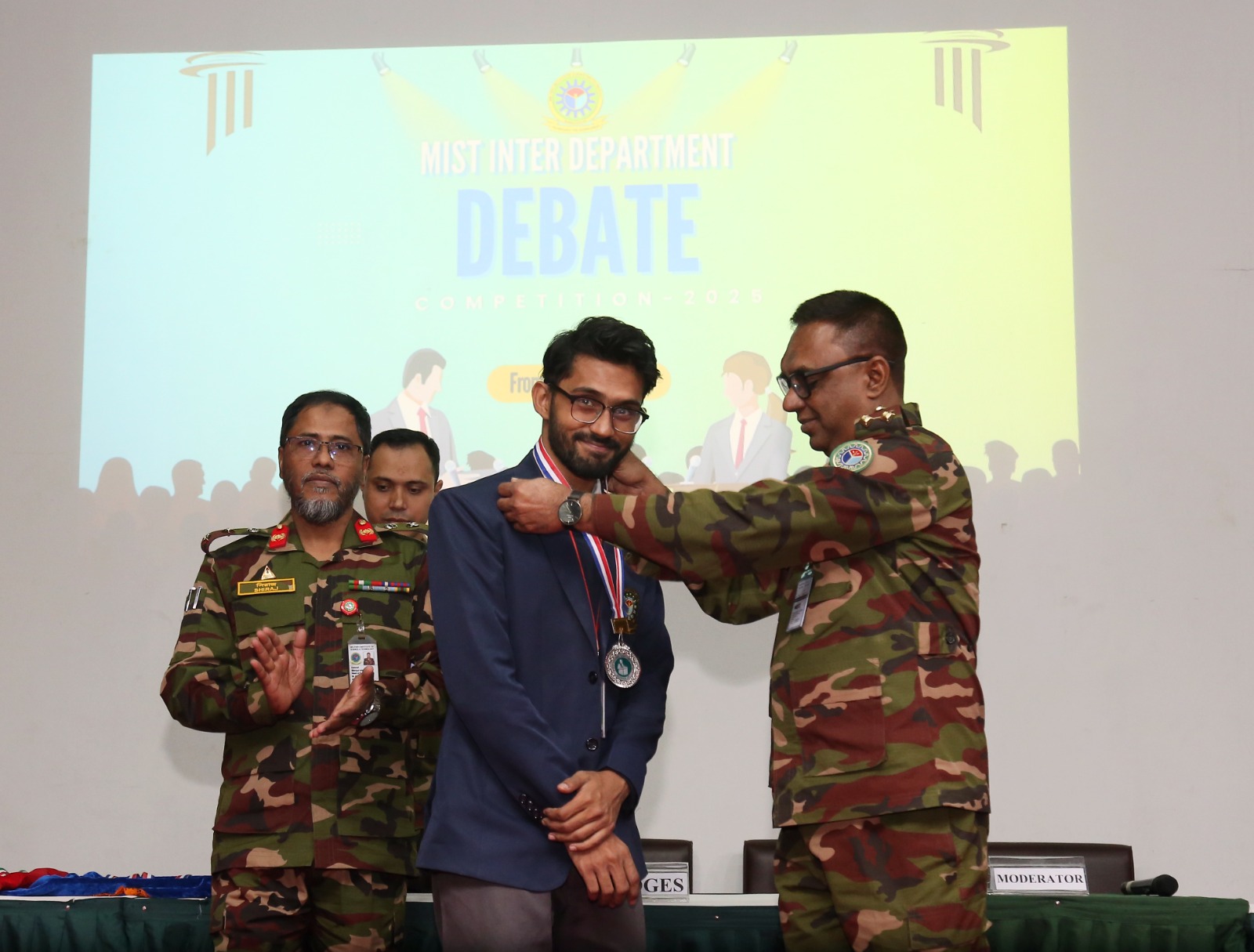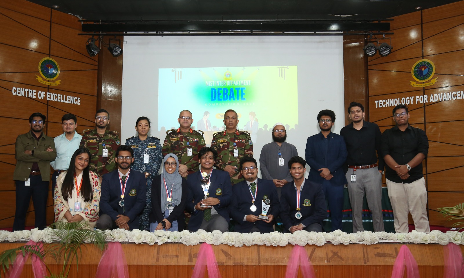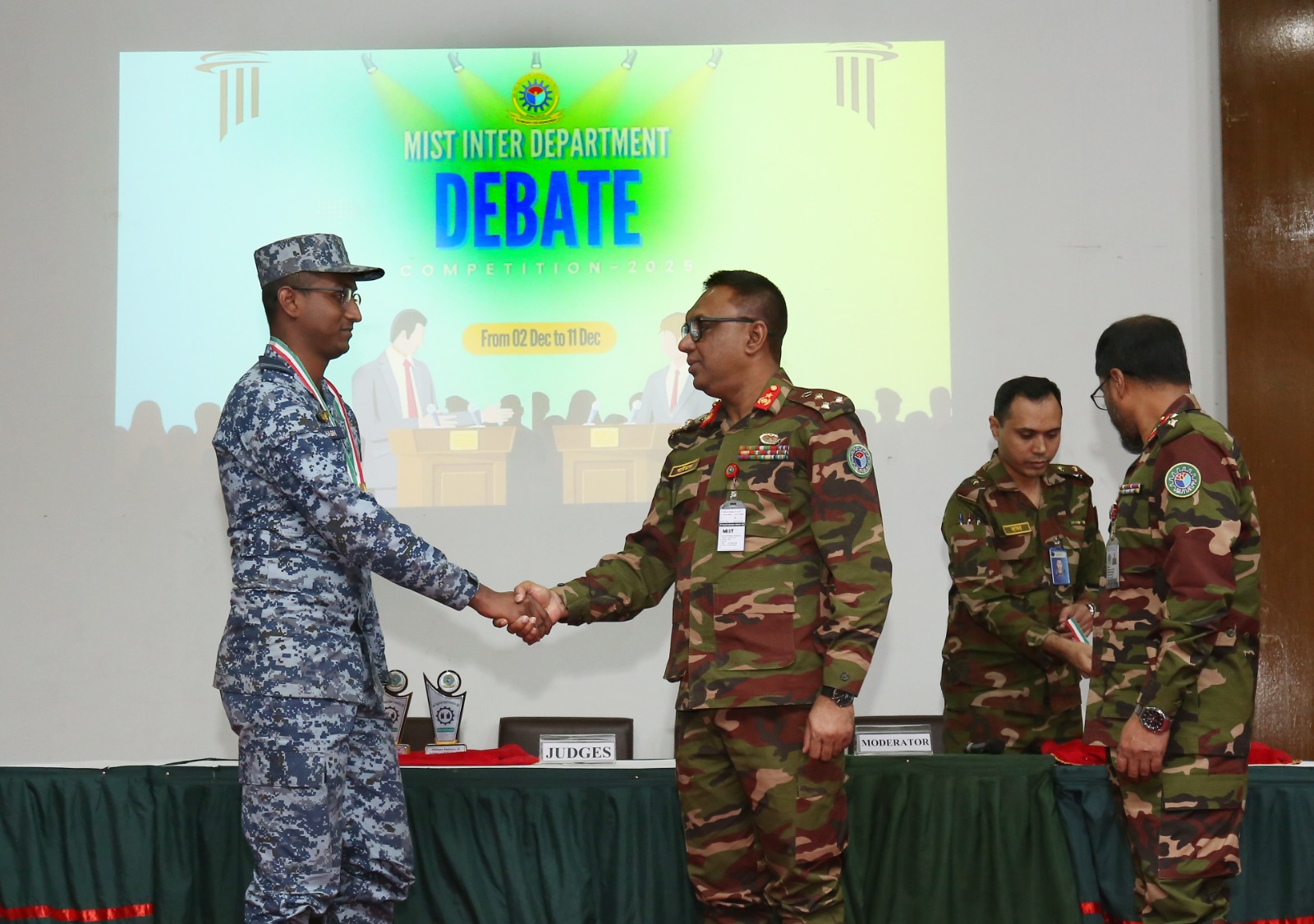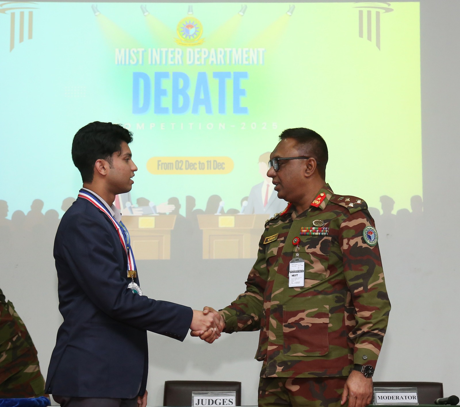 Starting on 2nd December 2025, MIST Inter-Department Debate Competition 2025 formally concluded on 11 December 2025. The Department of EECE emerged as the Champion, while the Department of IPE secured the position of Runner-up. Brigadier General Md. Awal Khan, Head of the Department of Mechanical Engineering, graced the closing ceremony as the Chief Guest. The competition was organized under the supervision of the Department of Science and Humanities, in collaboration with the MIST Debating Society.