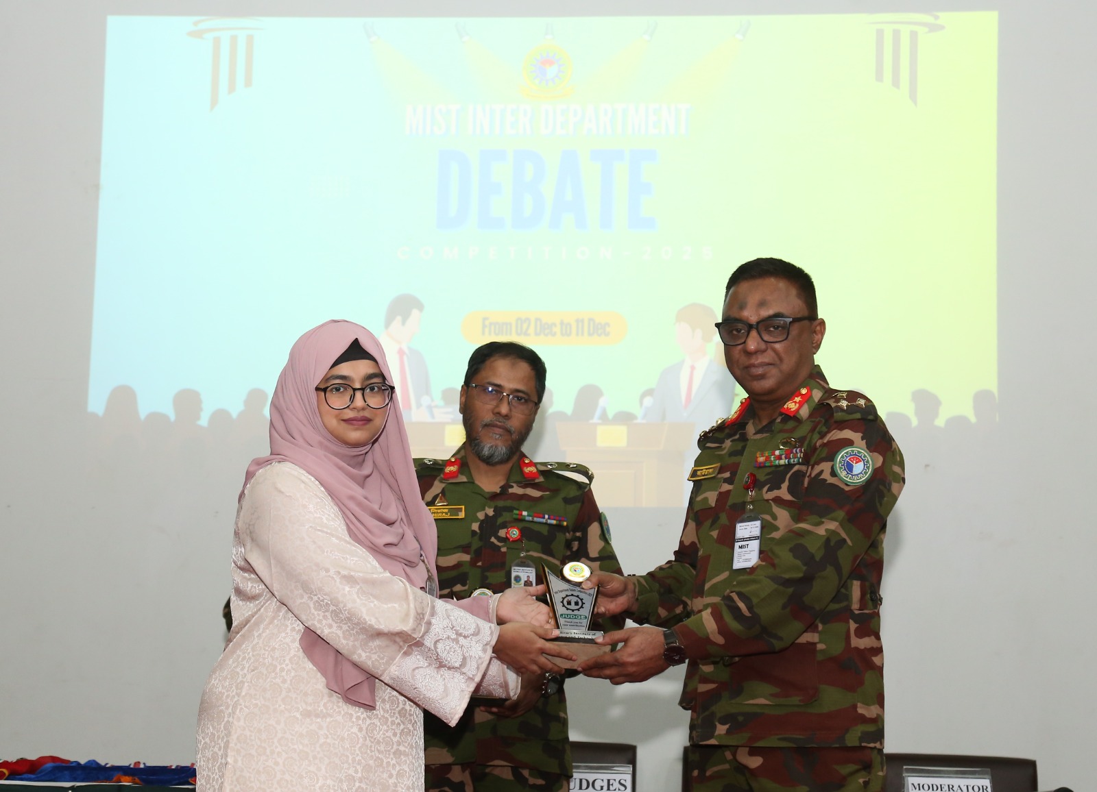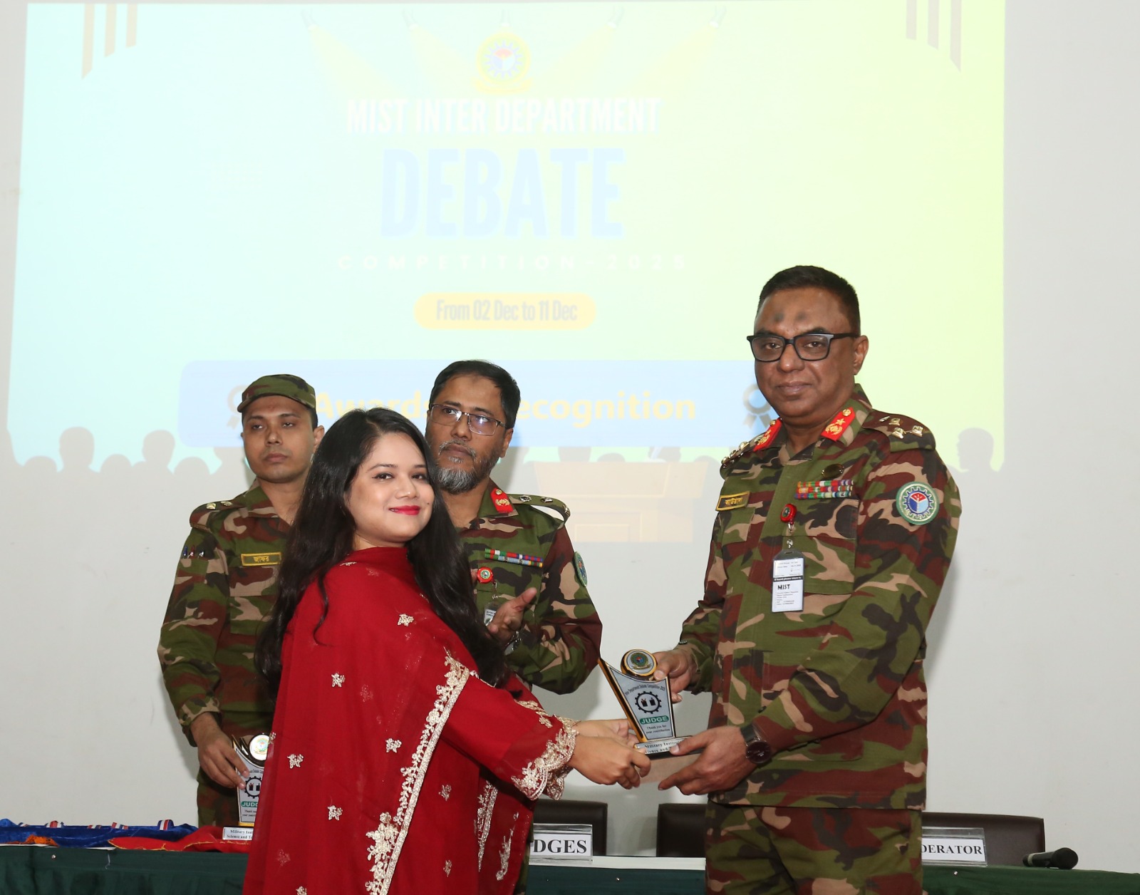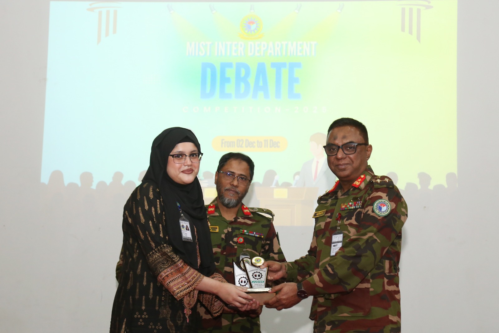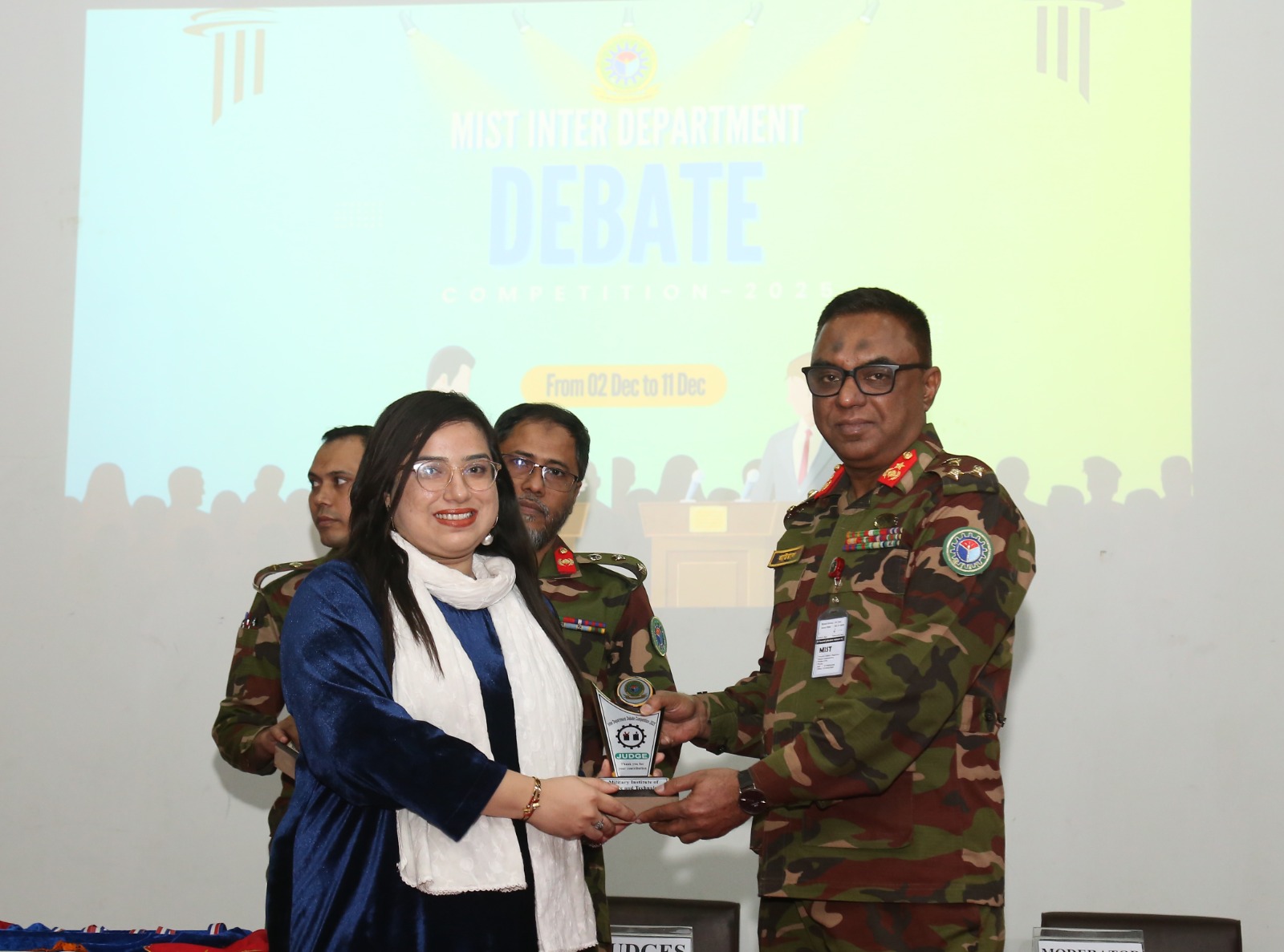 Starting on 2nd December 2025, MIST Inter-Department Debate Competition 2025 formally concluded on 11 December 2025. The Department of EECE emerged as the Champion, while the Department of IPE secured the position of Runner-up. Brigadier General Md. Awal Khan, Head of the Department of Mechanical Engineering, graced the closing ceremony as the Chief Guest. The competition was organized under the supervision of the Department of Science and Humanities, in collaboration with the MIST Debating Society.